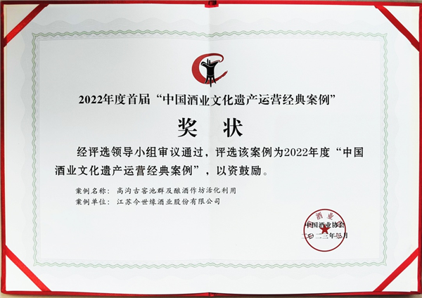 近日,中国酒业协会30周年庆典活动在山东泰安举行。今世缘酒业科技、文化成就分别荣获“中国酒业30年科技成果奖”“中国酒业30年文化双创奖”;今世缘酒业名誉董事长周素明,副董事长、副总经理吴建峰荣膺“中国酒业30年功勋人物奖”。会议还表彰了首届“中国酒业文化遗产运营经典案例”,今世缘酒业“高沟古窖池及酿酒作坊活化利用”入选。 以酒兴业、以业报国。30年来,中国酒业在科技浪潮中经历了质的飞跃,酿酒科技取得一项又一项重要成果。今世缘酒业与茅台、五粮液等10家白酒企业荣获“中国酒业30年科技成果奖”。 今世缘酒业立足创新驱动,以质结缘,用现代科技提升传统产业,率先实现了国际领先的智能化酿造,成为中国白酒智能化酿造标杆。通过酿酒工艺、生产方式创新,开创国缘V9清雅酱香新品类,建立高端化的品质价值表达体系,成为《清雅酱香型白酒》团体标准的制定者。文化与科技的拥抱,形成了今世缘核心竞争力。 今世缘酒业副董事长、副总经理吴建峰代表公司领取“中国酒业30年科技成果奖”。 文化创新是酿酒产业的驱动力量。为表彰酒企在文化创造性转化和创新性发展方面取得的成就与贡献,中国酒业协会对积极创新传统文化、大力弘扬中国酒文化的文化先锋颁发“中国酒业30年文化双创奖”,共19家白酒企业荣获该项大奖。 缘文化是今世缘的灵魂、魅力之源,既是家国情怀的显著表达,也是差异化发展的天然优势。中国酒业协会理事长宋书玉表示,“缘”寄寓了中国人最美好、最真挚的情感,今世缘倡导的缘文化与酒文化高度契合、完美匹配,是中国白酒品牌文化的创新典范。 今世缘酒业文化总监孙万军代表公司领取“中国酒业30年文化双创奖”。 30年朝乾夕惕,在中国酒业波澜壮阔的发展历程中,涌现出一批又一批殚精竭虑、建功卓著的功勋人物。他们栉风沐雨,砥砺前行,用智慧酿造美酒,用匠心赓续文明,用汗水惊艳时光,成为行业发展一个又一个里程碑。 庆典现场隆重颁发了“中国酒业30年功勋人物奖”,向为酒业做出卓越贡献的功勋人物致敬。今世缘酒业名誉董事长周素明等行业突出贡献领导人,中国酿酒大师、今世缘酒业副董事长、副总经理吴建峰等科技带头人荣膺该奖项。 为激励广大酒企保护好、运营好灿烂丰富的中国酒业文化遗产,让民族产业永远绽放荣光。中国酒业协会组织文化遗产运营经典案例评选,今世缘酒业“高沟古窖池及酿酒作坊活化利用”入选首届“中国酒业文化遗产运营经典案例”。茅台、五粮液、洋河、泸州老窖、汾酒、古井等共12家酒企也获此殊荣。 高沟古窖池群是中国传统酿酒工艺典型的活态存在的重要实物遗存,具有重要的科学研究价值和独特的历史人文价值,是江苏省文物保护单位。2009年,“高沟酒酿造技艺”入选江苏省非物质文化保护遗产。 高沟古窖池群是中国传统酿酒工艺典型的活态存在的的重要实物遗存,具有重要的科学研究价值和独特的历史人文价值,是江苏省文物保护单位。2009年,“高沟酒酿造技艺”入选江苏省非物质文化保护遗产。 |